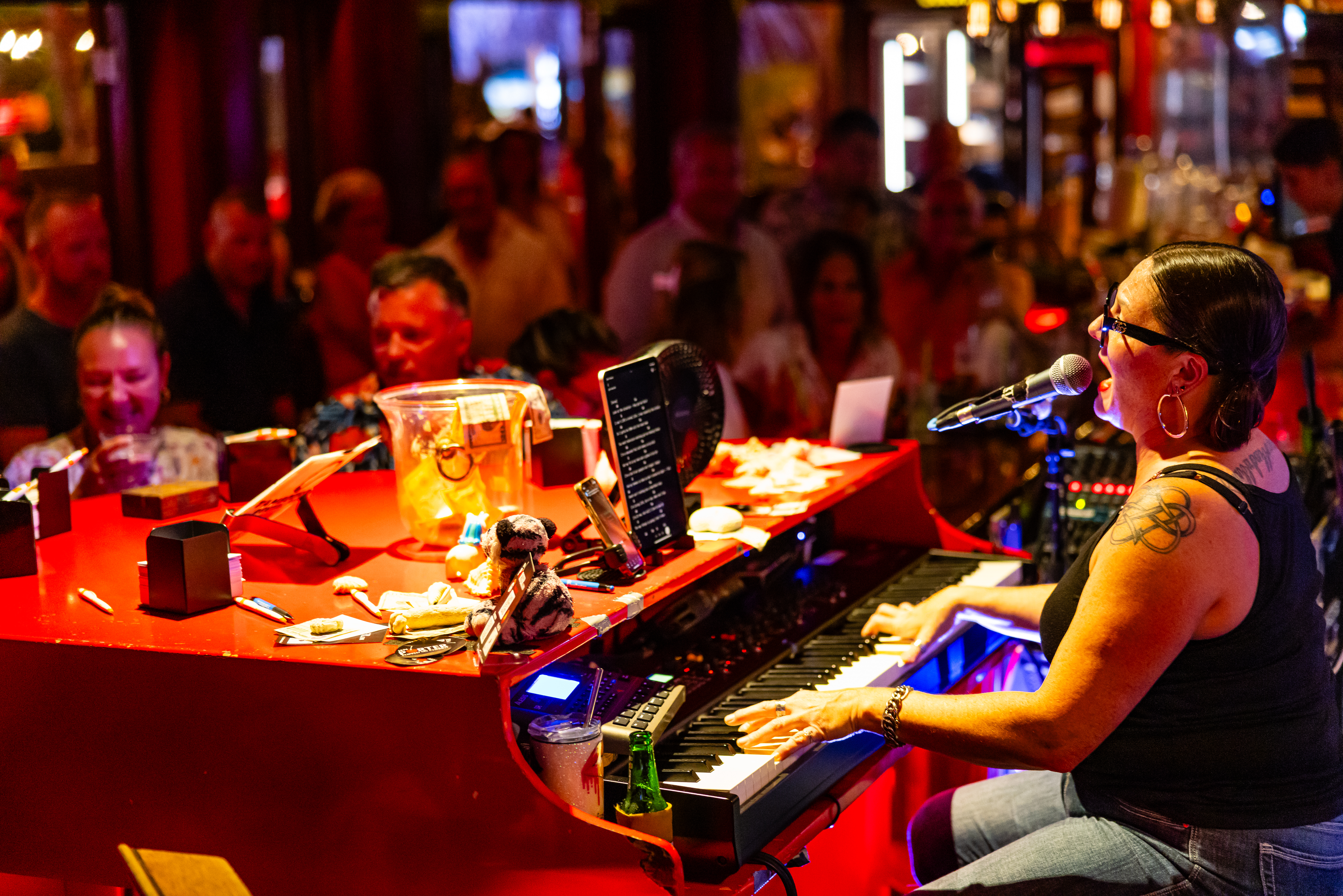 Experience the most entertaining nightlife in Palm Beach at Sopranos Piano Bar, one of Aruba’s most iconic live music venues. Located in the heart of Palm Beach’s high-rise hotel area, Sopranos offers a vibrant open-air piano bar where music, laughter, and spontaneous fun fill the night.